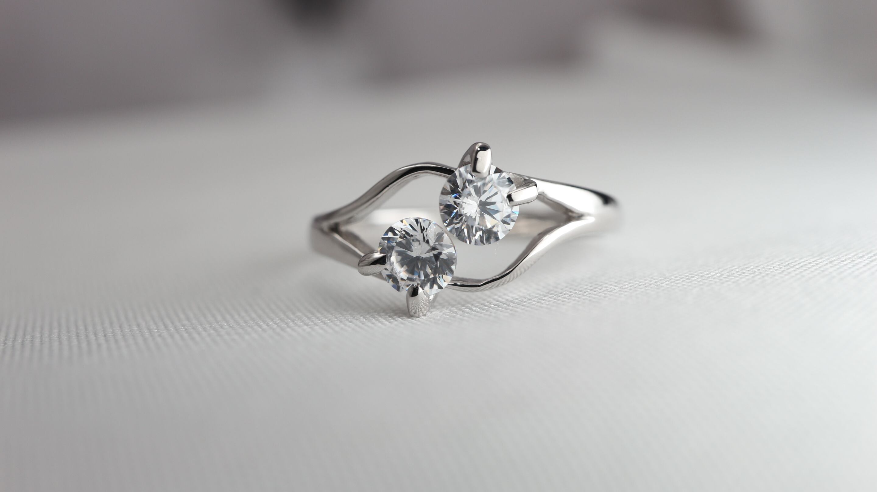 美しいウェーブラインに、向かい合う様にセッティングされた2pcのダイヤモンド。